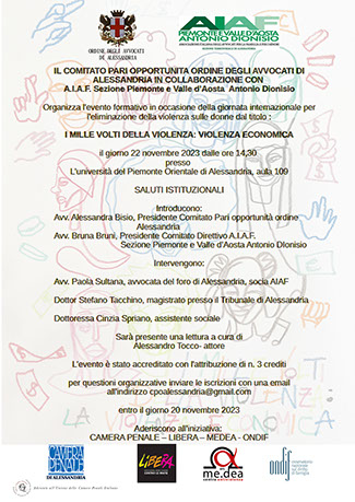 Aps Colibrì, Assefa Alessandria, Associazione Cultura e Sviluppo, Aps me.Dea, Aps Alter Ego, Associazione Don Angelo Campora, Associazione DLF Alessandria – Asti, Collettivo Medusə Aps Cambalache, Associazione l’Abbraccio, SAOMS di Capriata d’Orba, Associazione Comunità San Benedetto al Porto APS, Associazione Insieme per Castelletto, Associazione Esagono, Compagnia Teatrale Stregatti, Associazione Verso il Kurdistan, Cooperativa soc. Azimut, Cooperativa Semi di Senape, Associazione Lgbtqi Tessere Le identità, Cooperativa soc. Coompany&, Cooperativa soc. La Ruota, Radio Gold, CGIL, CISL, UIL, ANPI Provinciale.