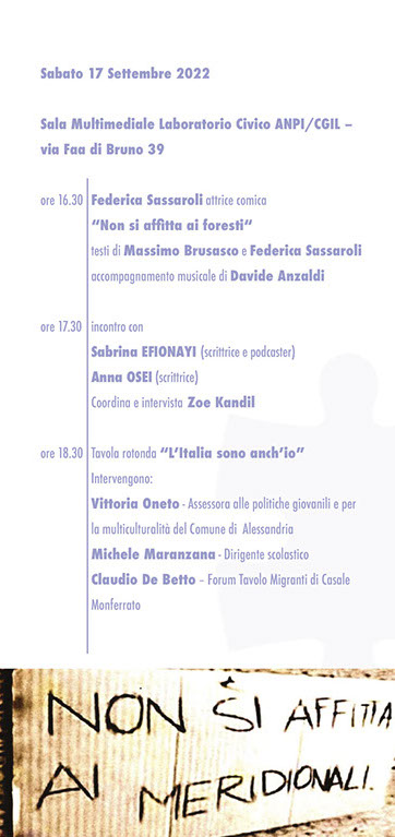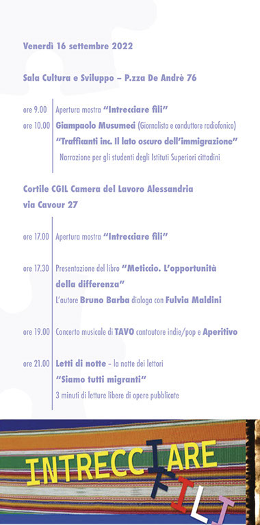 In collaborazione con comune di Alessandria, coop. semi di senape, aps Cambalache, Global Thinking Foundation, CGIL, radio Gold